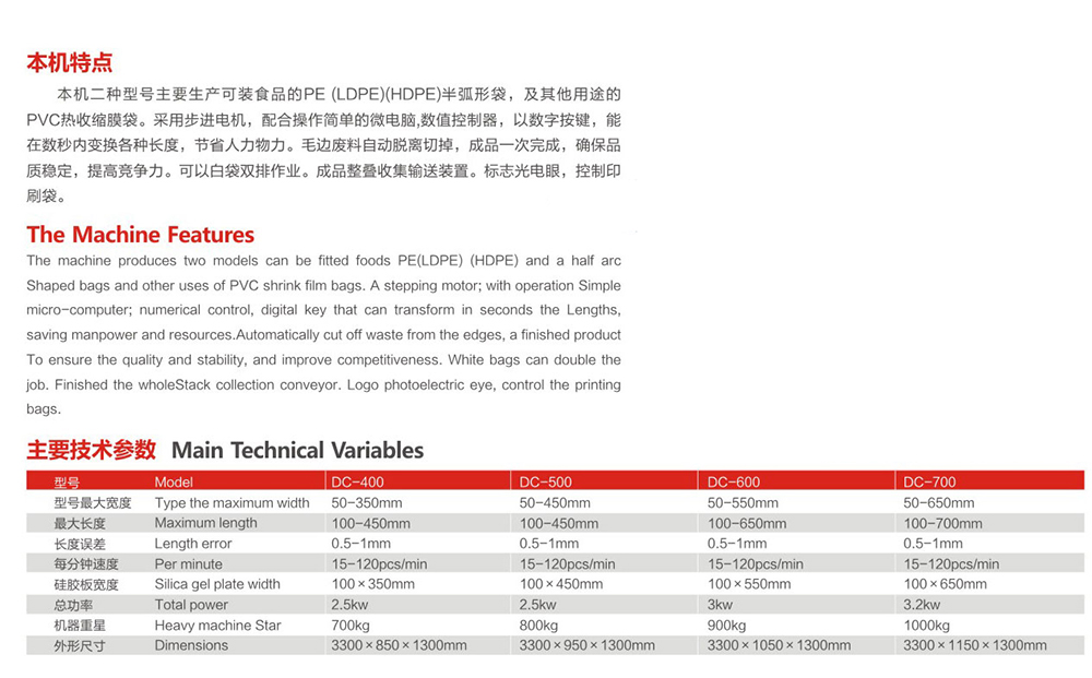 DC-400-700PVC-PE arc bag making machine